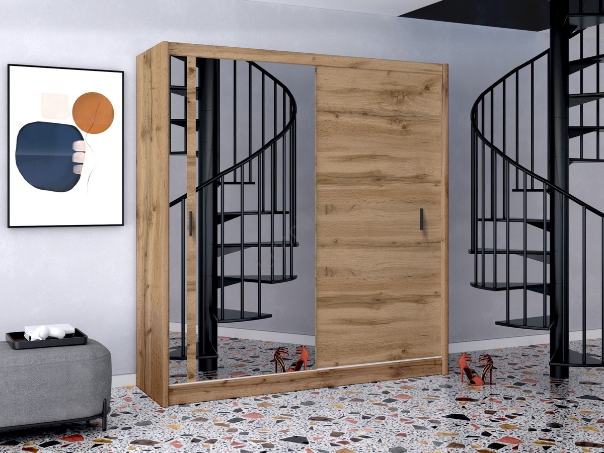 • Гардероб с огледало MIRO 203x215 см дъб крафт/черен