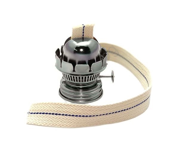 • Фитилът, изрязан равномерно, се запалва и след като горелката се загрее, фитилът се вкарва в нея.