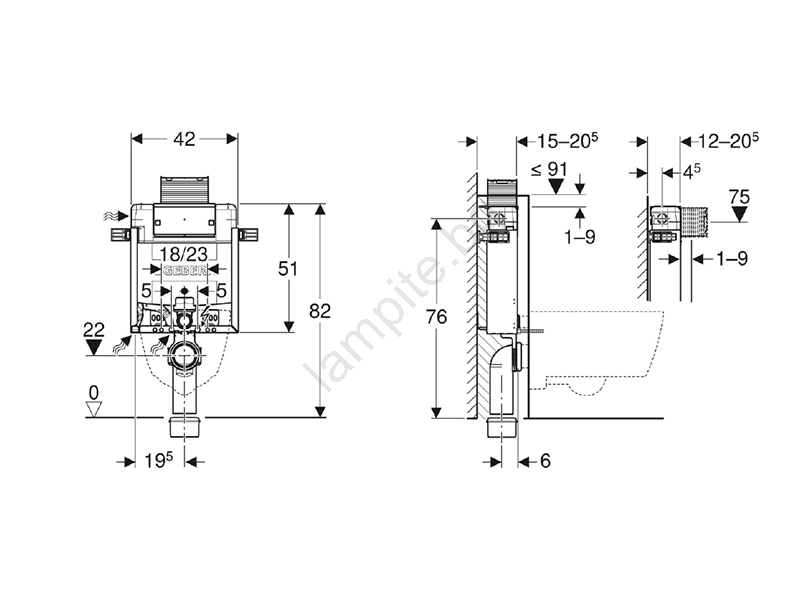 Geberit 110.000.00.1 - Инсталационен модул за вграждане за конзолна тоалетна Kombifix 82 cm