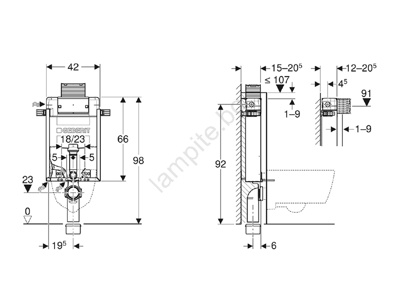 Geberit 110.010.00.1 - Инсталационен модул за вграждане за подвесно WC Kombifix 98 cm