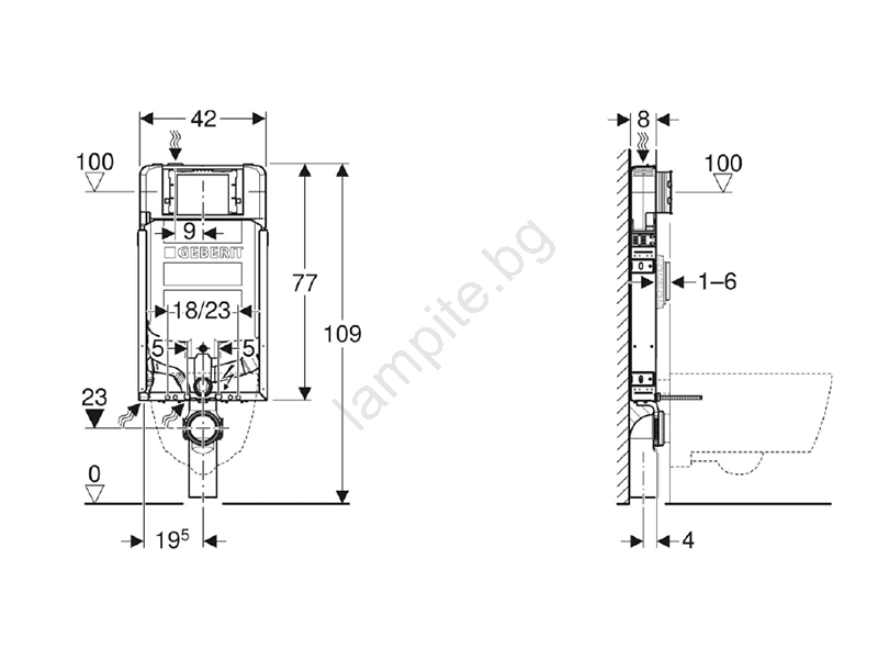 Geberit 110.791.00.1 - Вграден монтажен модул за висящо WC Kombifix 109 см