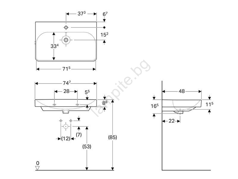 Geberit 500.249.01.1 - Стенна мивка Smyle Square 75x48 см керамика/бяла