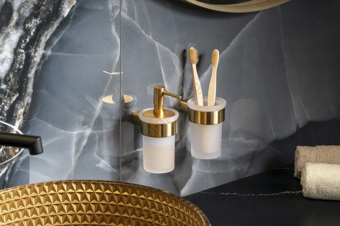 Gedy - Настенен държач за четки за зъби PIRENEI опалово стъкло/матово злато