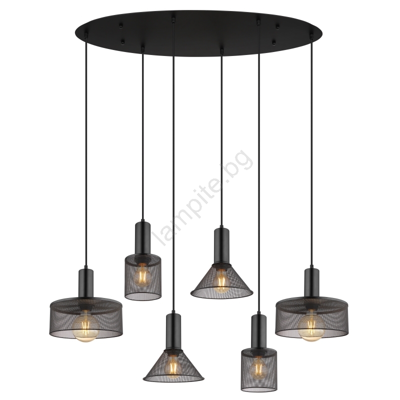 Globo 15648-6H - Висящ полилей JEDD на кабел, 6xE27/60W/230V, черен