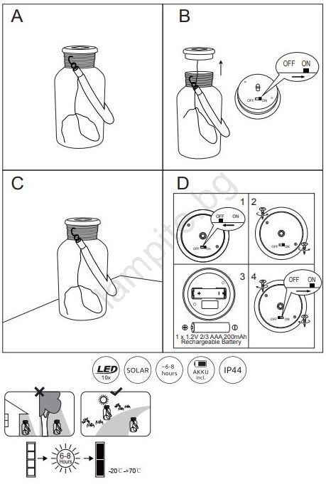 Globo - LED Соларна лампа LED/0,6W/3,2V IP44 200 mAh