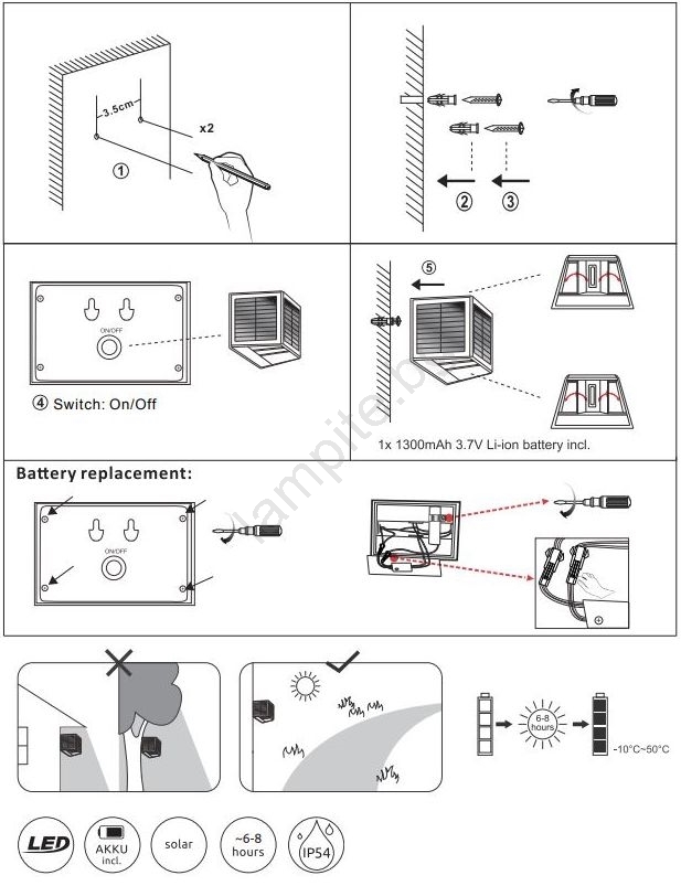 Globo - LED Соларна лампа LED/6W/3,2V 3000K IP54 1300 mAh