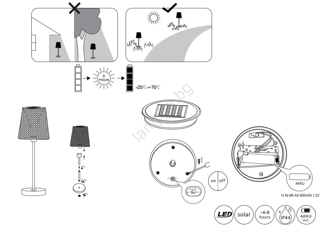 Globo - LED Соларна лампа LED/0,06W/3V IP44