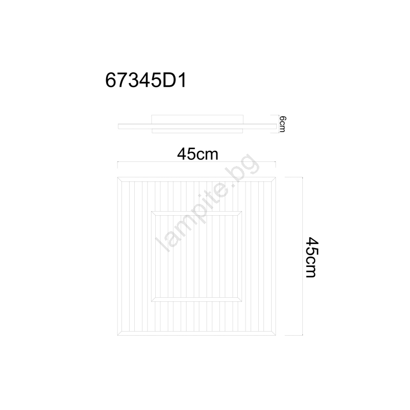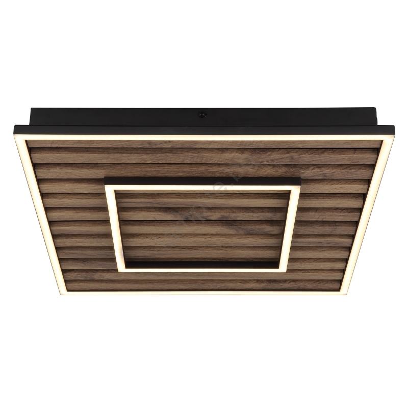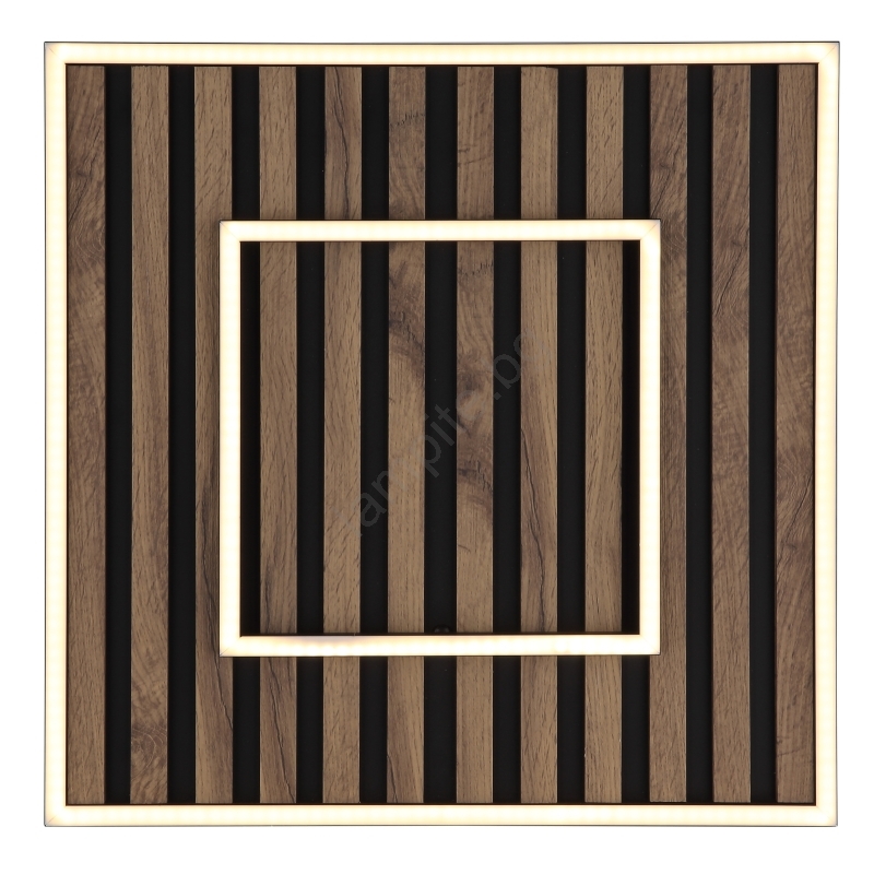 • Квадратна форма с черна рамка, допълнена с MDF плоскост с имитация на тъмно дърво и опалов пластмасов капак.