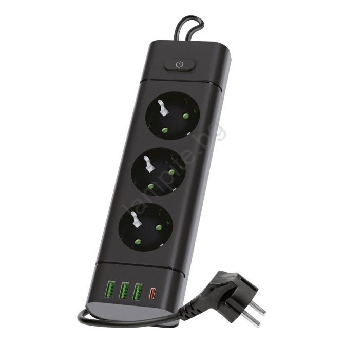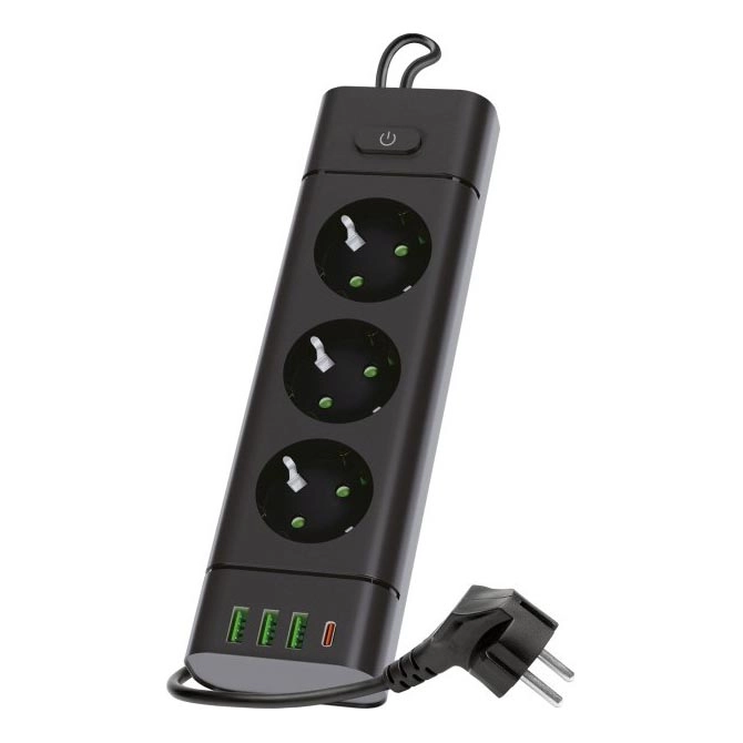 Разклонител с превключвател LINEA PRO 3x230V + 3xUSB-A + 1xUSB-C SCHUKO 3 m черен