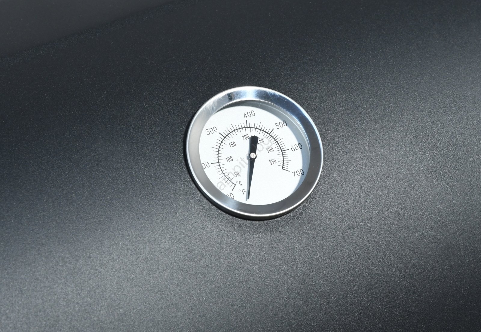 • Капакът е снабден с вграден термометър за контрол на температурата, голямата грил повърхност с хромирана решетка и практичният рафт за съхранение пред грила осигуряват удобно приготвяне на деликатеси.