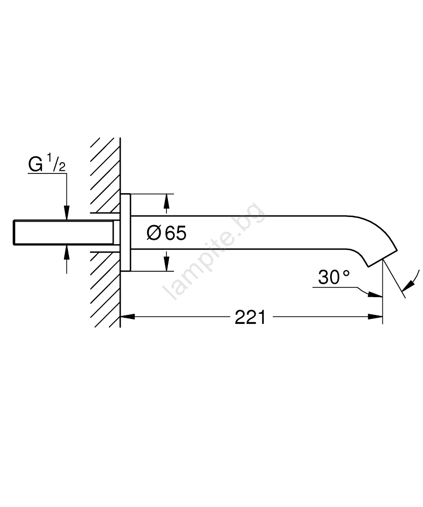 • Дължина на излива 221 mm за удобно пълнене на ваната.