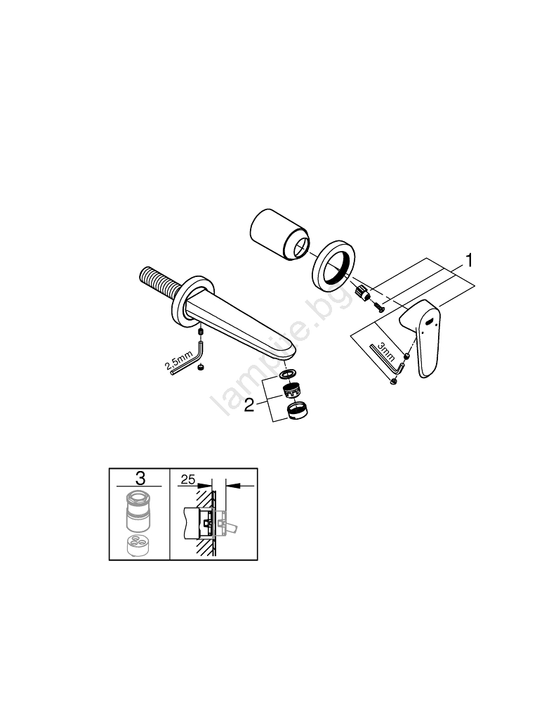 • Стенно смесител за умивалник с монтаж в две отвора за елегантен вид на банята.