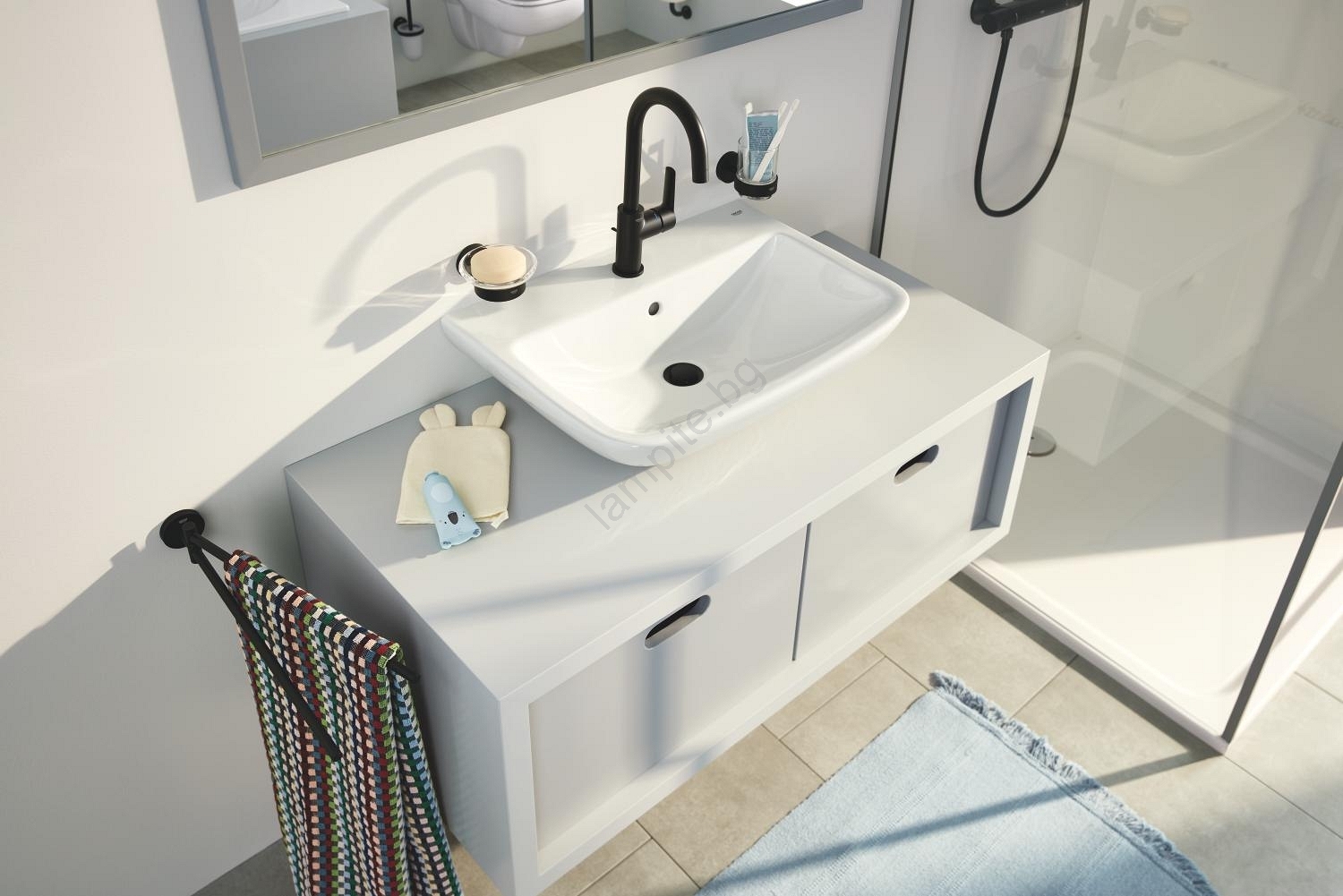 • GROHE Water Saving аератор с дебит 5,7 l/min спестява вода, без да компрометира комфорта.
