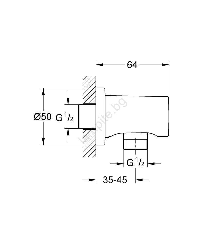 • Стенно коляно DN 15 за надеждно свързване на ръчен душ.