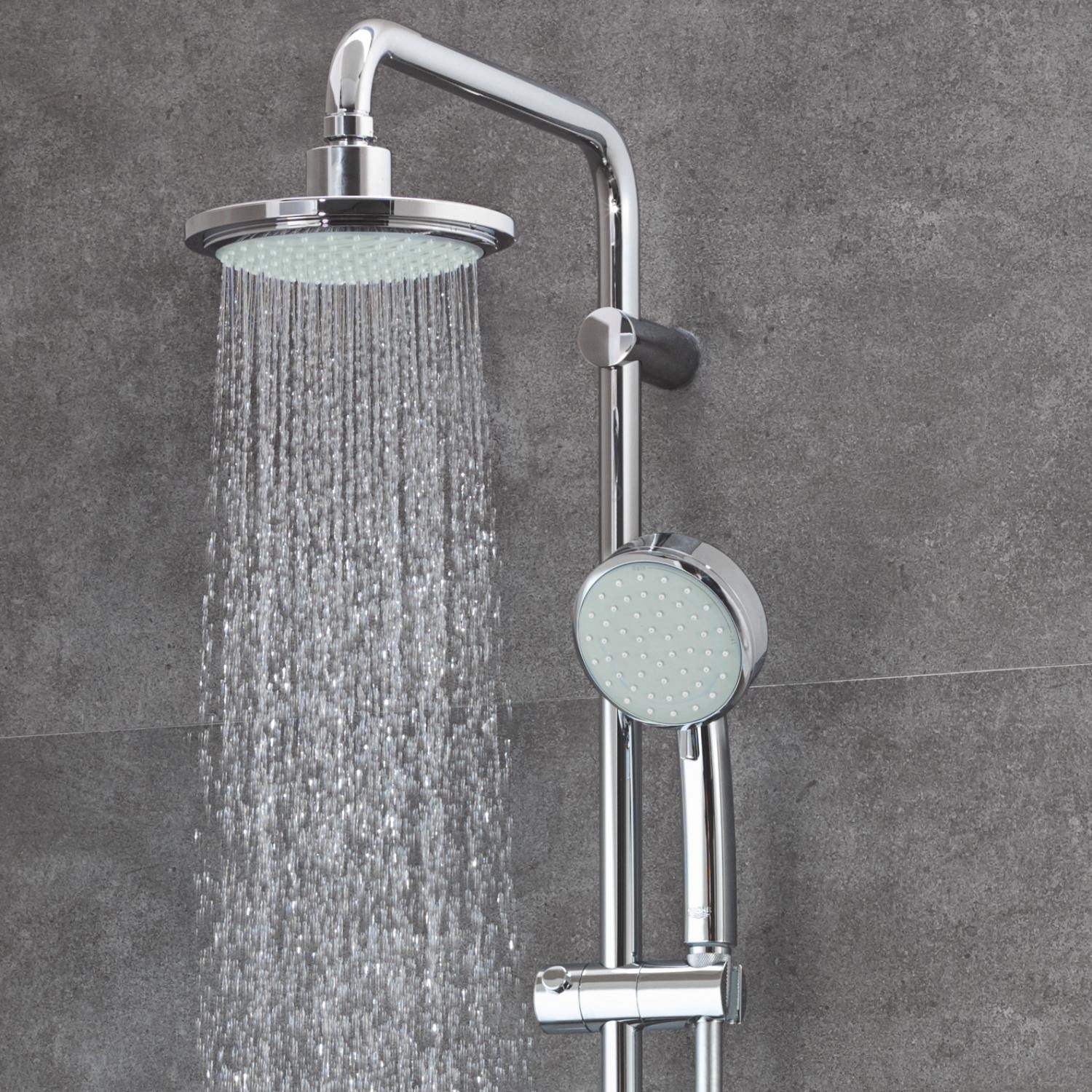 • Душова система със стенен термостатен смесител и функция Aquadimmer.
