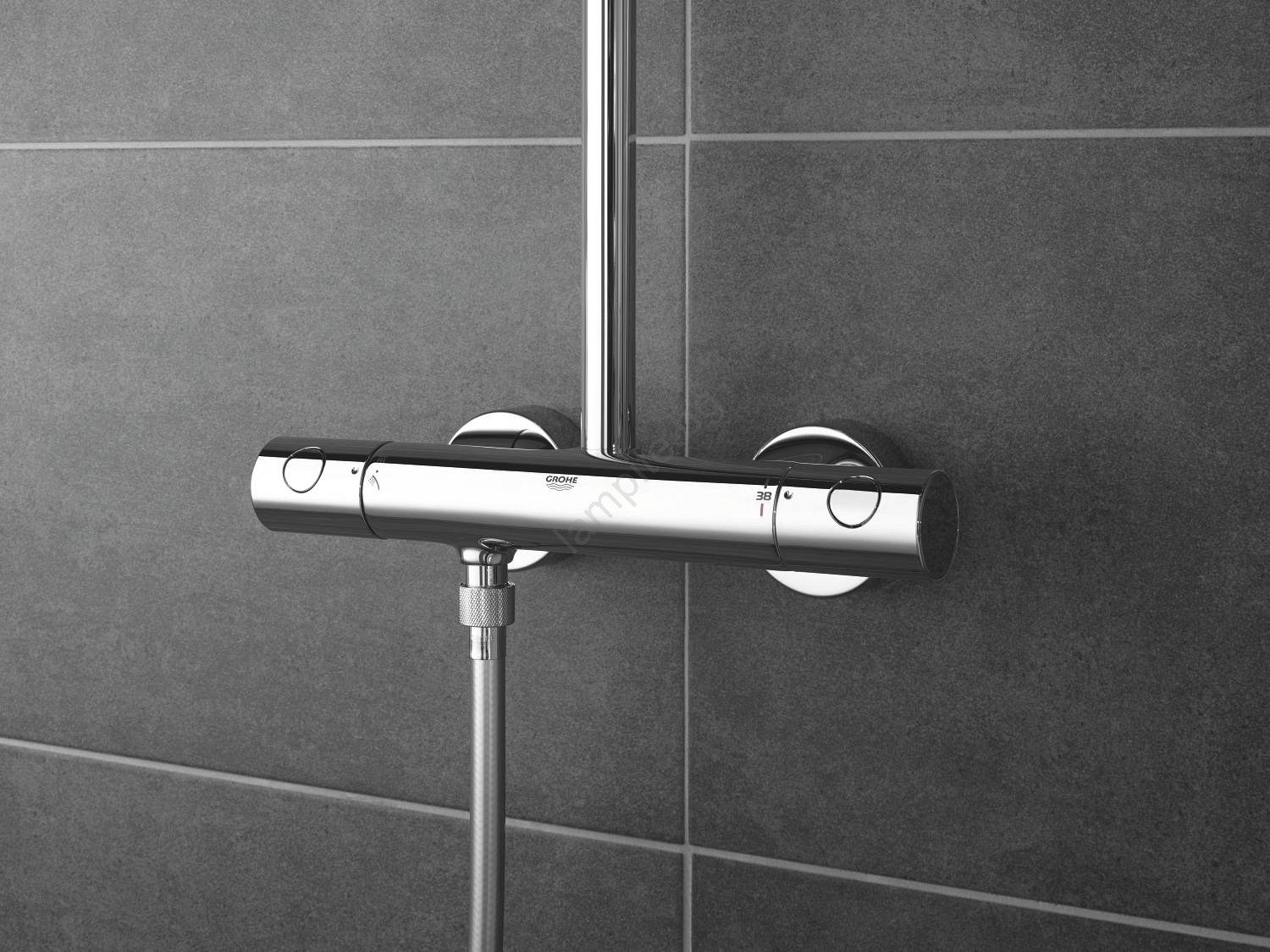 • Стенно термостатично смесител с функция Aquadimmer за лесно превключване между горен и ръчен душ.