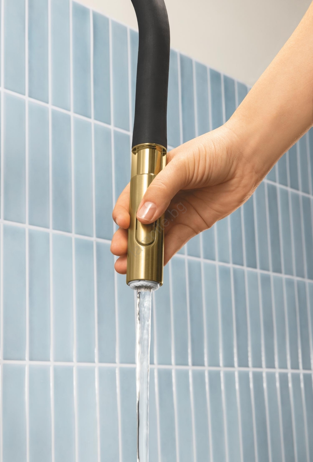 • Професионален душ с гъвкав и хигиеничен кухненски маркуч GROHFlexx от сантопрен.