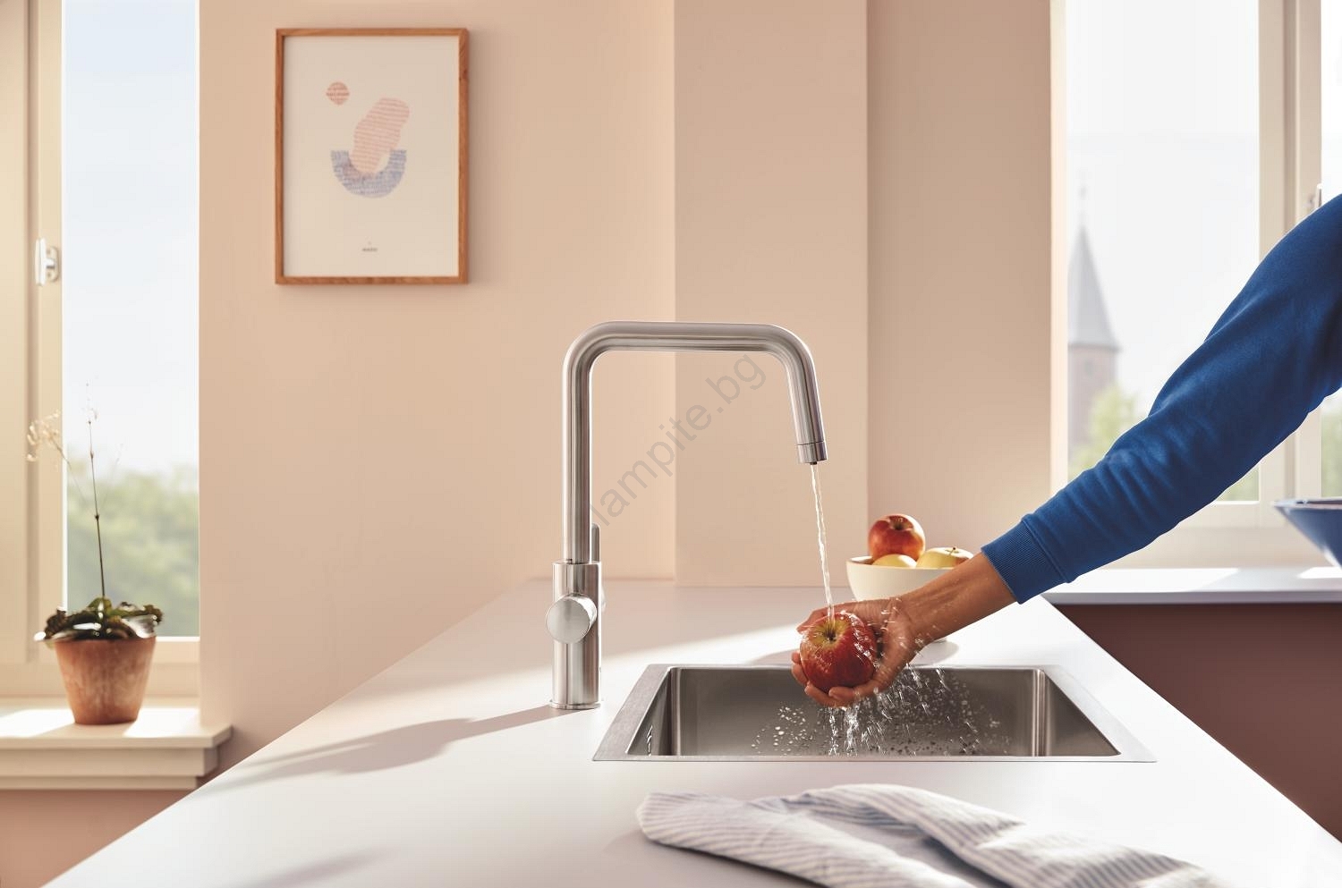 • Кухненски смесител с лост GROHE Blue с вградена филтрираща функция за чиста и вкусна вода.