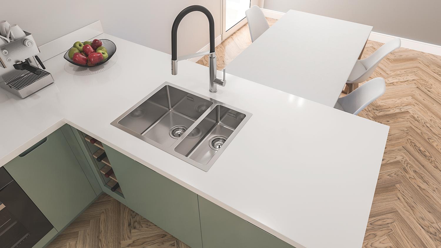 • Възможност за монтаж под плот, над плот или в равнина за гъвкава инсталация.