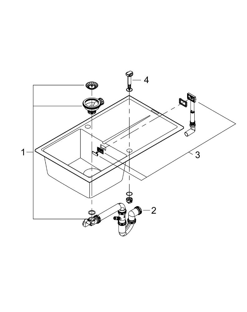• В комплекта са включени автоматичен механизъм на отпадъка с въртяща се дръжка, комплект за отточната система, цедка за отпадъци и монтажен комплект.