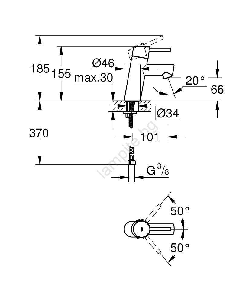 • Технологията GROHE Water Saving намалява потреблението на вода до максимум 5 л/мин при налягане 3 бара.