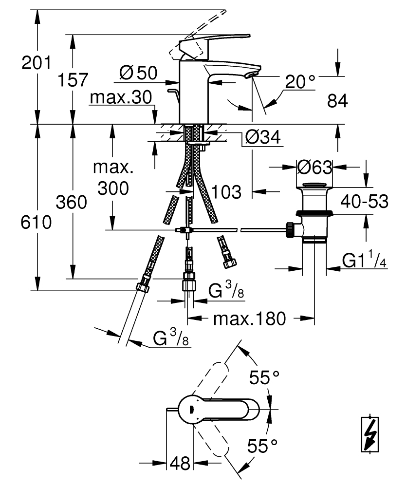 • Повърхностна обработка GROHE StarLight® предпазва от надраскване и осигурява дълготраен блясък.