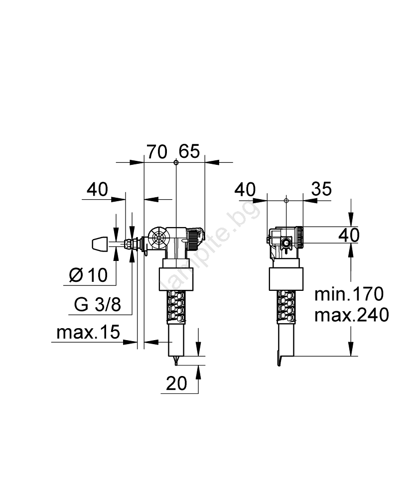 • Универсален попълващ клапан, подходящ за високо и ниско монтирани тоалетни казанчета от пластмаса, керамика или чугун.