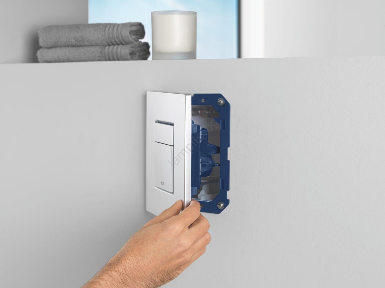 • Подходящо за всички стандартни бутони за пускане на водата GROHE (156 × 197 mm).
