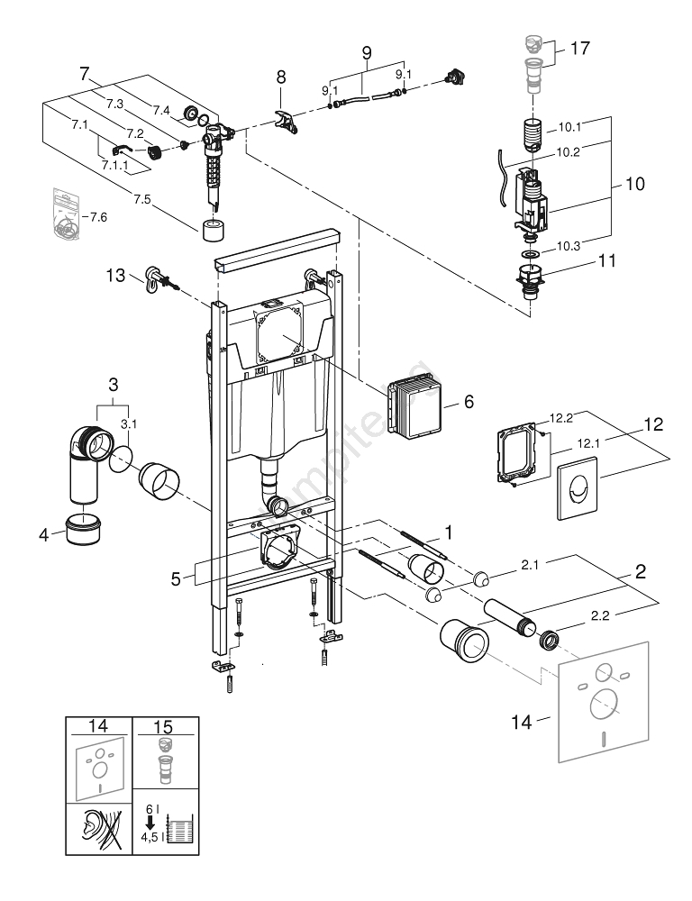 • Инсталационна система GROHE Rapid SL за висящи тоалетни чинии с височина 1,13 m.