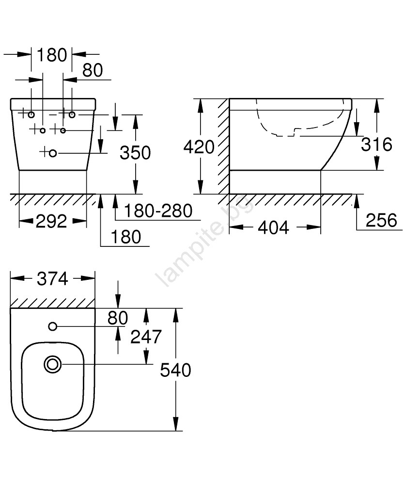 • Бидето е оборудвано с един отвор за смесител и с преливник за безопасна употреба.