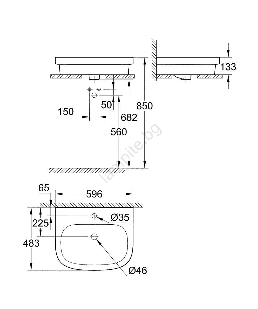 • Елегантна мивка за плот с размери 596 × 483 мм.