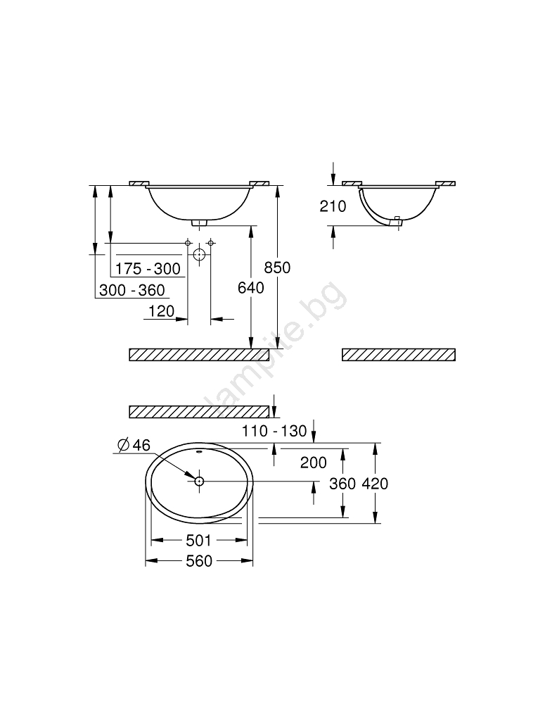 • Вграден умивалник с ширина 560 mm и дълбочина 420 mm за елегантно интегриране в мебел за баня.