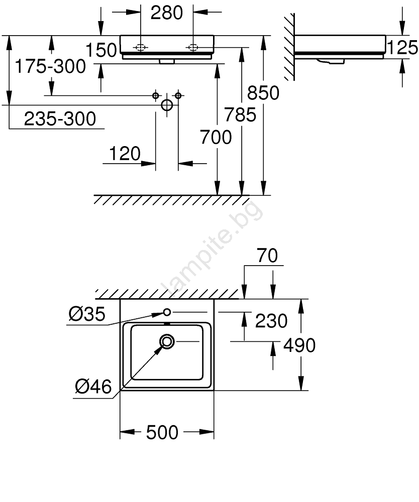 • Размери 500 × 490 mm идеални за по-малки бани.