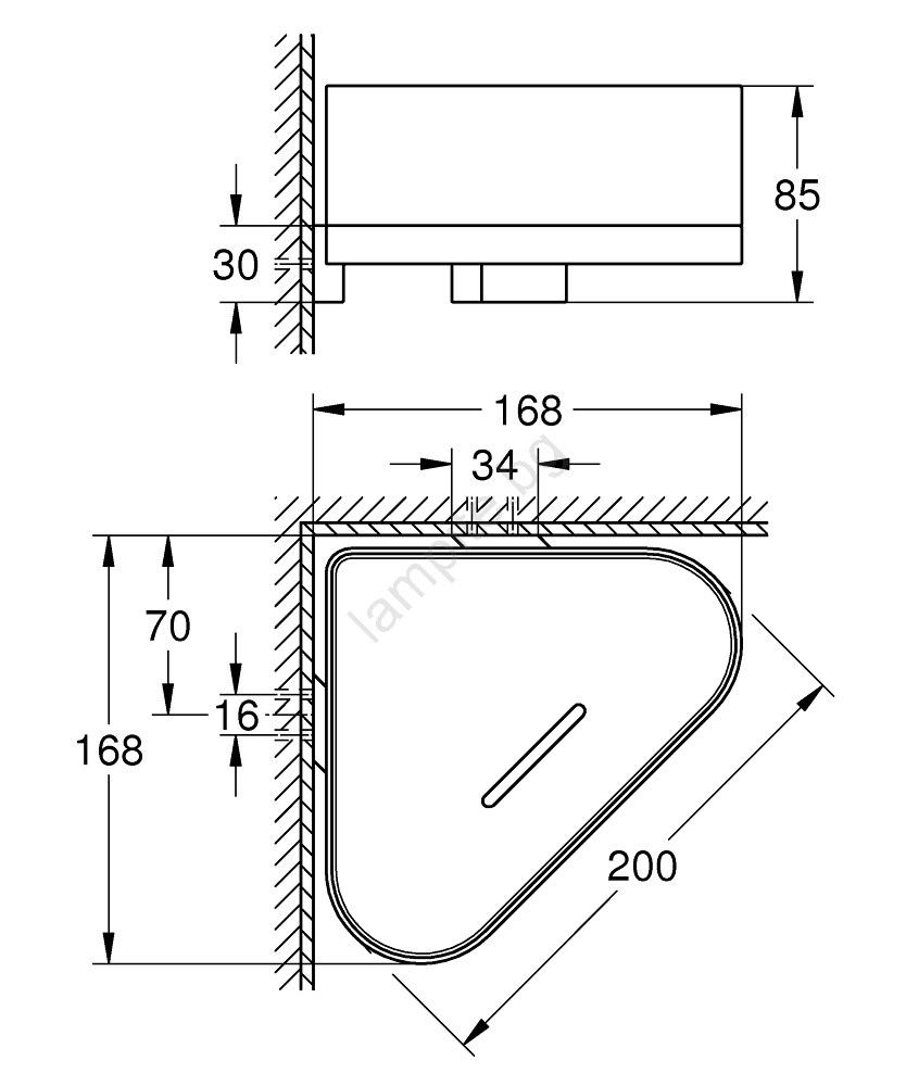 • Размери: ширина 168 mm, височина 85 mm, дълбочина 168 mm.