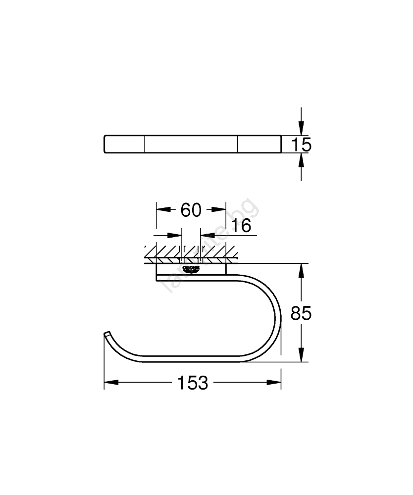 GROHE 41068DC0 - Държач за тоалетна хартия SELECTION 15,3 × 1,5 × 8,5 см неръждаема стомана