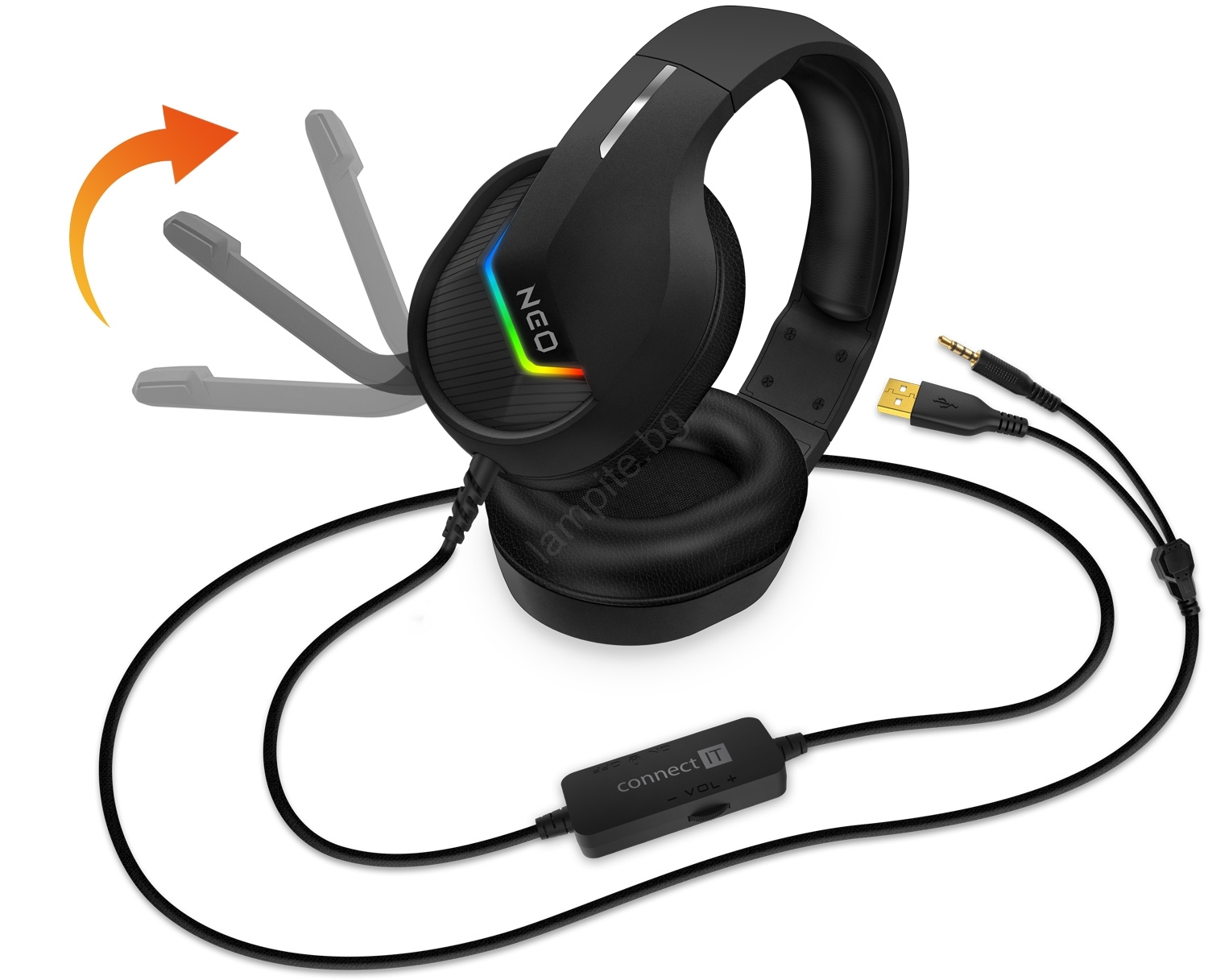 • Професионални геймърски слушалки с подвижен микрофон NEO с подсветка, предназначени за компютърни играчи.