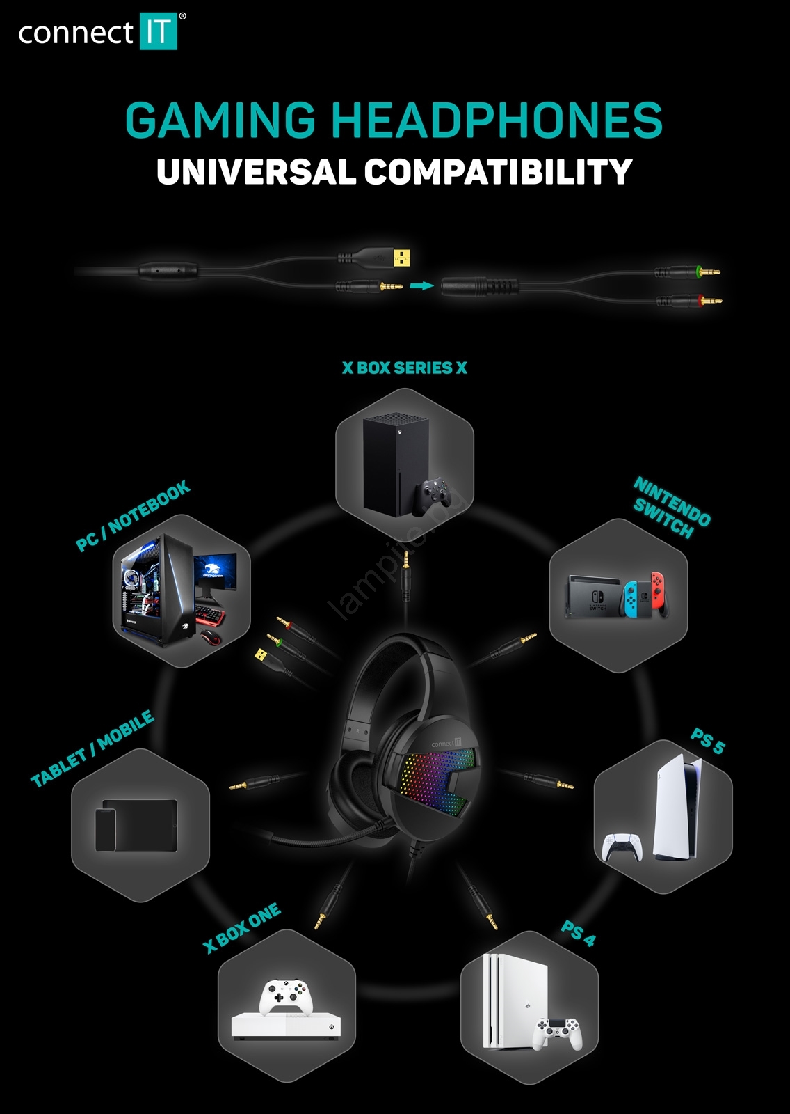 CONNECT IT CHP-3595-BK - LED RGB Гейминг слушалки с кабел с микрофон черен
