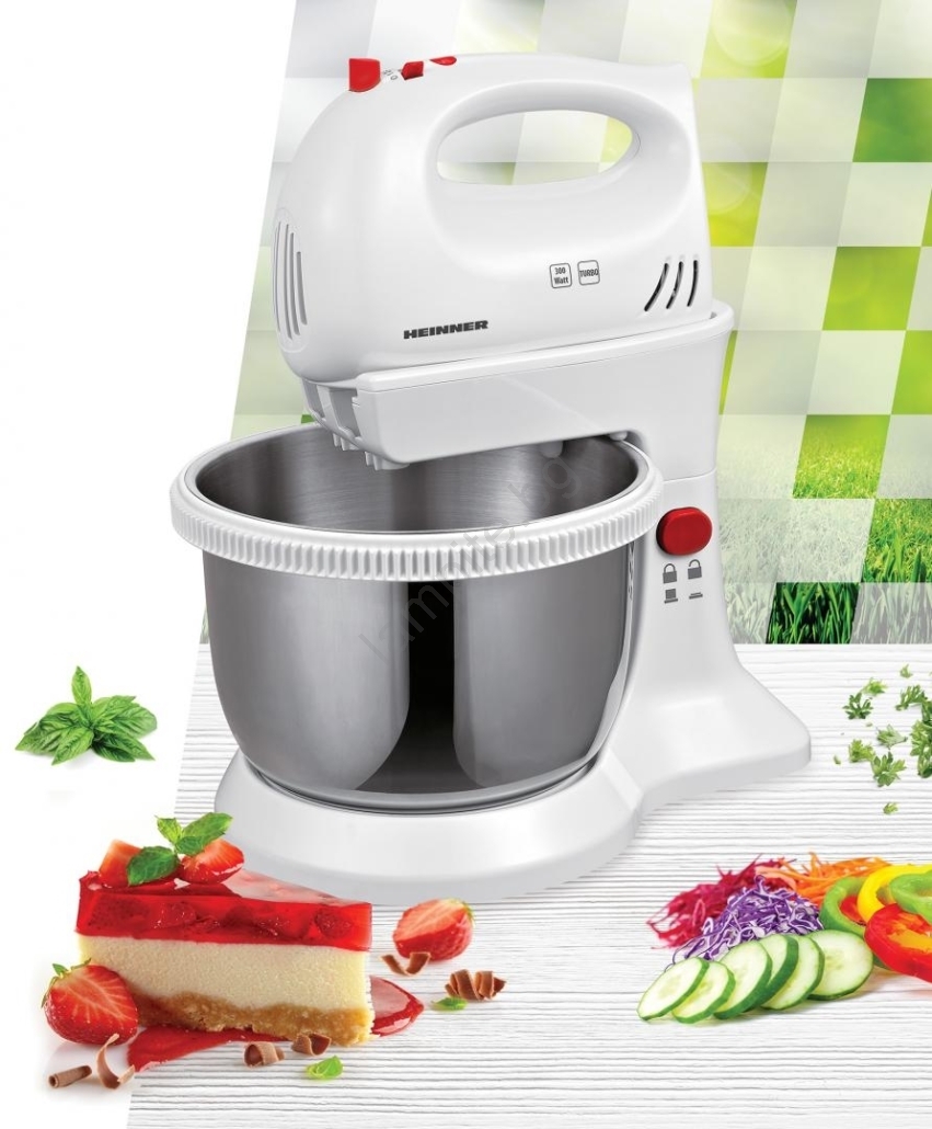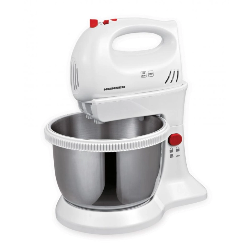 Heinner HMBR-300W - Ръчен миксер с въртяща се купа, 300 W/230 V, бял
