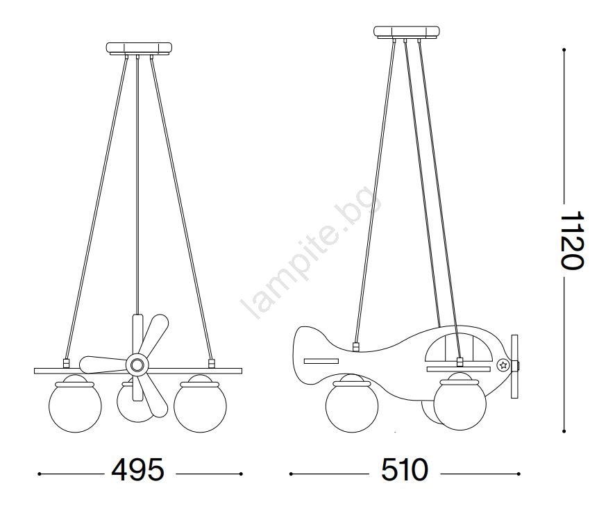 • Ideal Lux - Детски пендел AVION 3xE27/28W/230V син