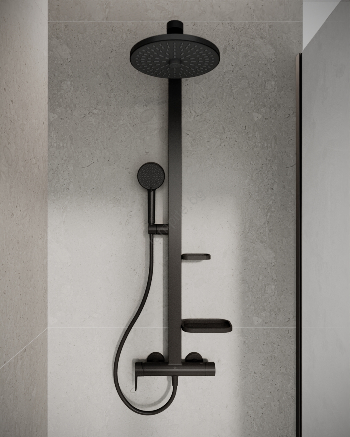 • Душ комплект Ceraflow ALU+ предлага пълно оборудване за удобен и модерен душ в елегантно сатенено черно изпълнение.