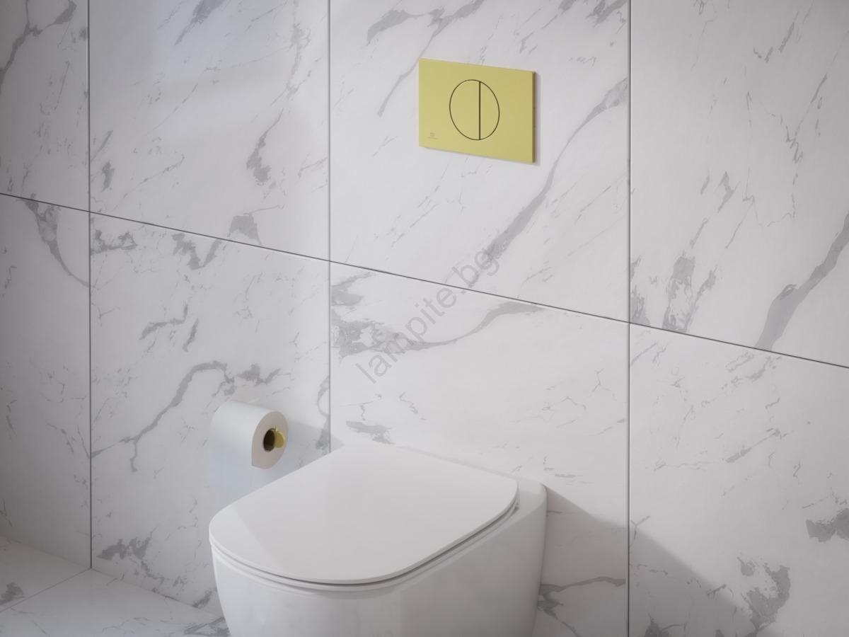 • Предназначена е за вграден резервоар с промивна вместимост от 4,5 л и може да се монтира в стена или в гипсокартонена преграда с помощта на вграден модул.