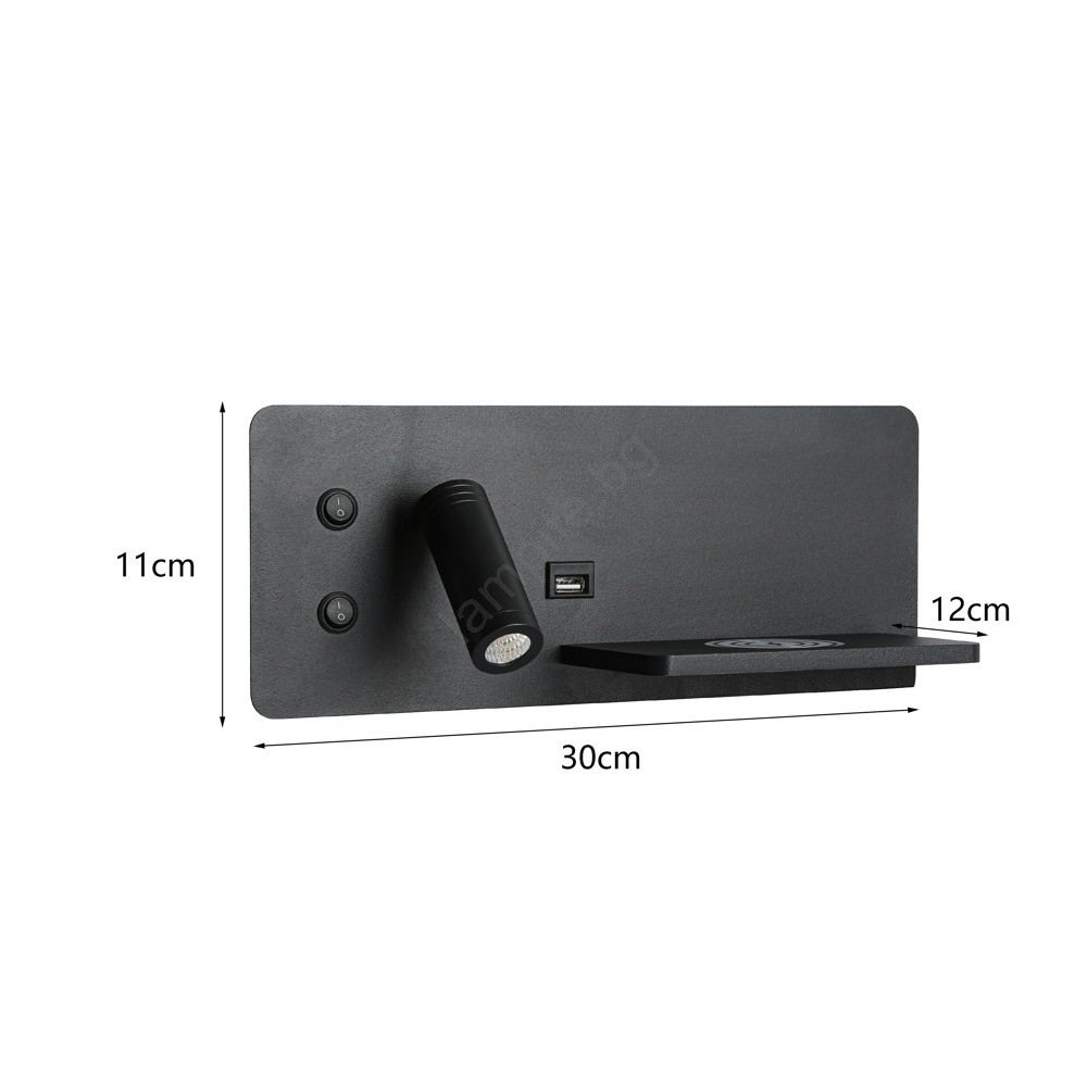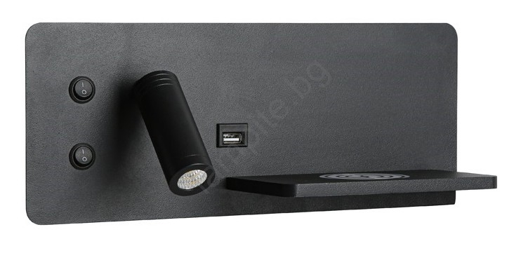 • Immax 08287L - LED Стенен спот с рафт, USB порт и безжично зареждане Be PREPARE LED/3W/230V + LED/3W черен