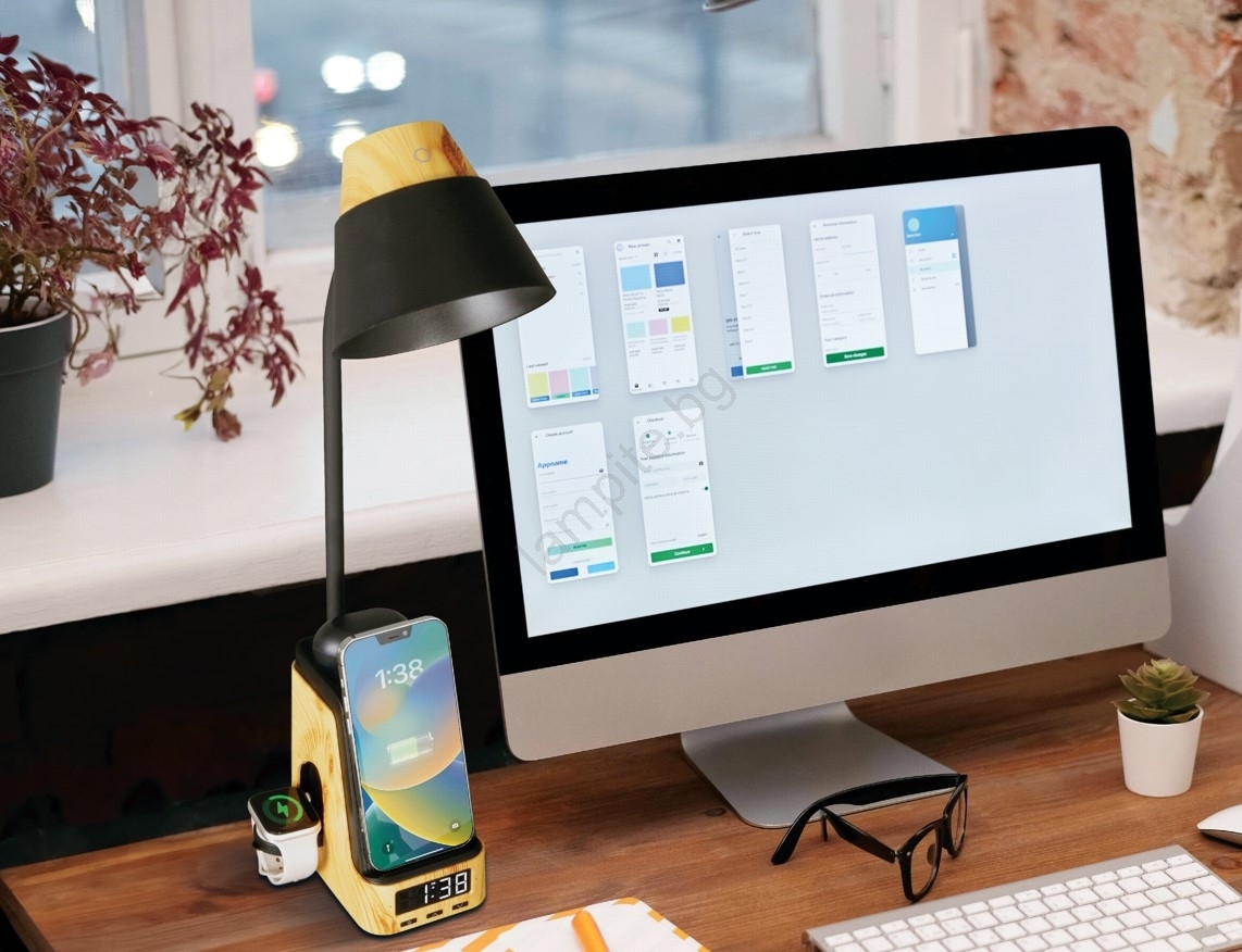 • LED+CCT Димируема настолна лампа с безжично зареждане QI IDEAL LED/8W/230V 2700/4000/5000K кафява