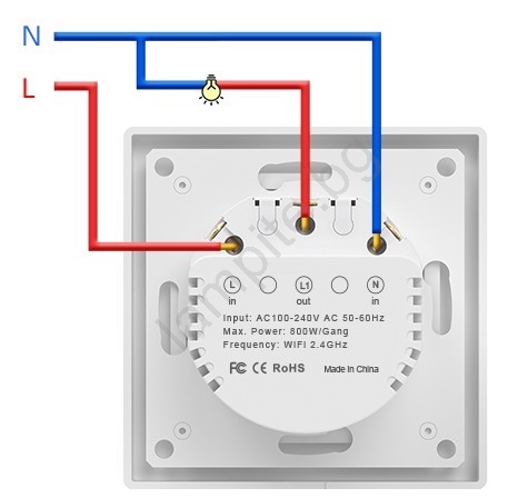• Внимание - този сензорен Wi-Fi ключ изисква работен неутрален проводник, т.е. в разпределителната кутия на ключа трябва да има син проводник - "нула".