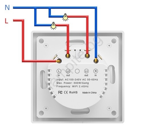 • Внимание - този сензорен Wi-Fi ключ изисква неутрален проводник, т.е. в разпределителната кутия на ключа трябва да има син проводник - "нула".