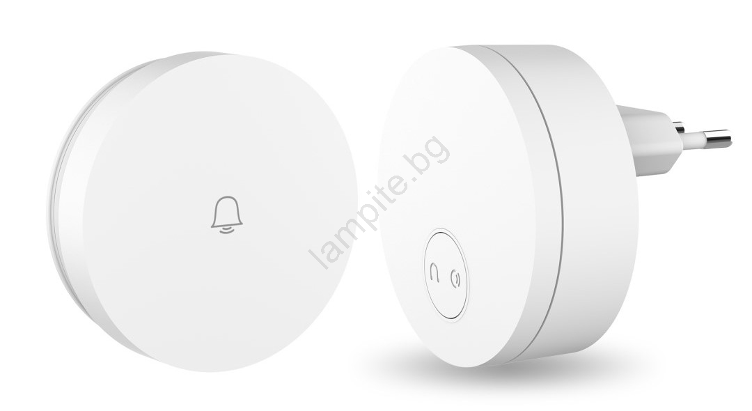• Умен безжичен звънец за врата (пиезоелектрически) с приемник, който се захранва директно от контакт 230 V.
