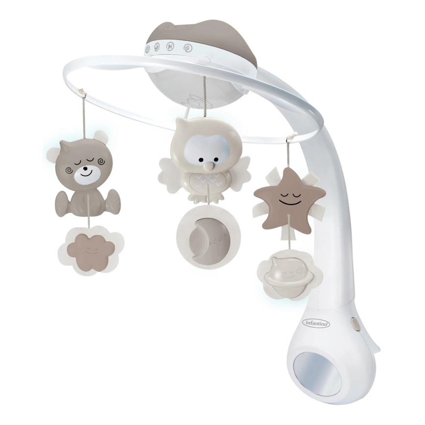 Infantino - Въртележка за бебешко креватче с мелодия 3 в 1, 3xAAA, кафява
