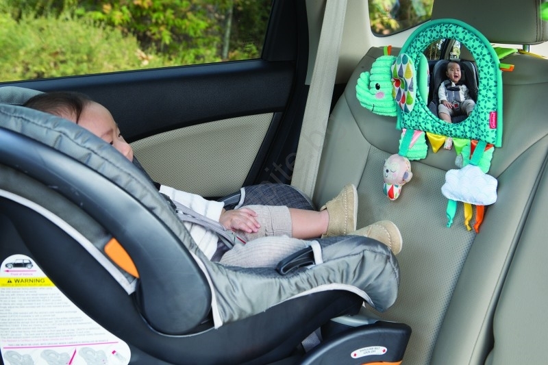 • При използване в кола голямото изпъкнало огледало позволява на родителя да наблюдава детето в столчето за кола, поставено обратно на посоката на движение на задната седалка.