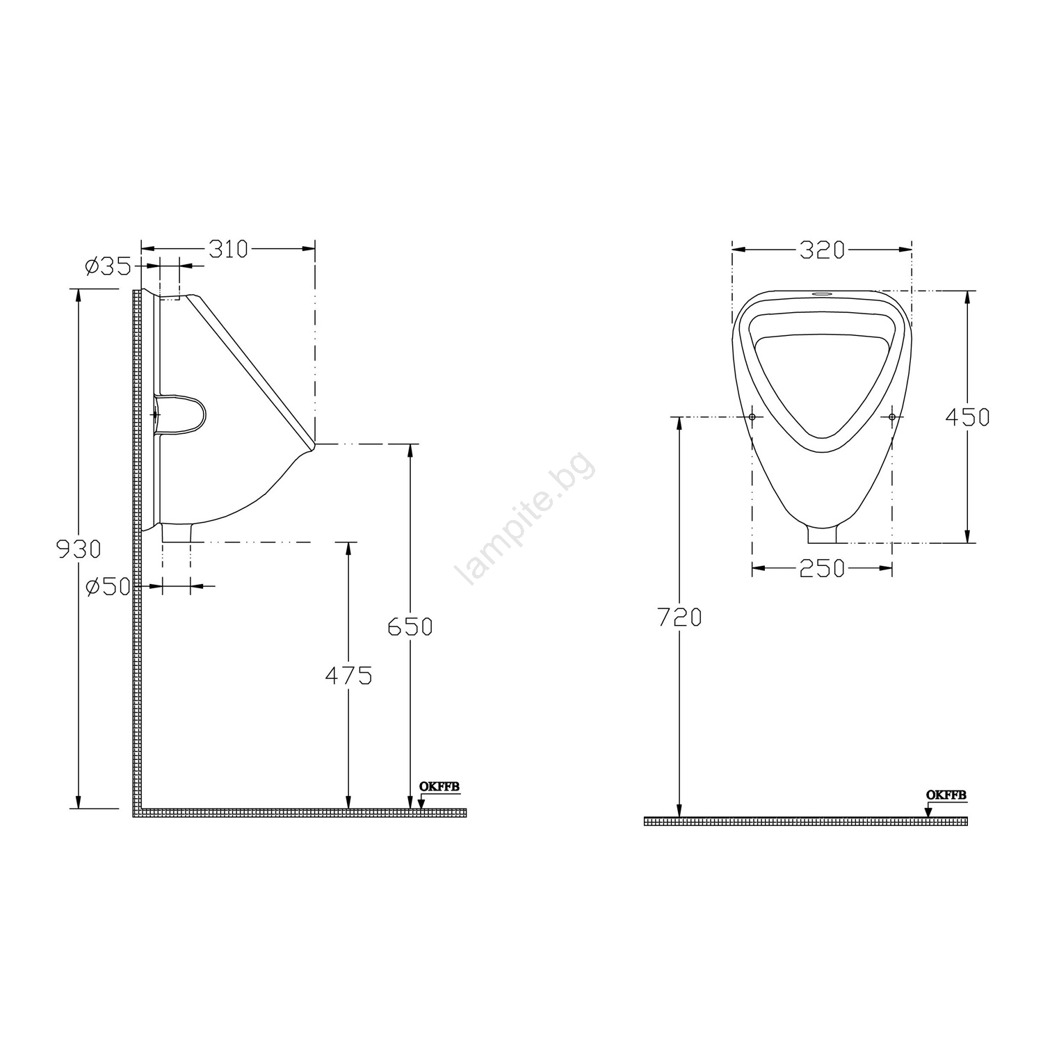 Isvea - Писоар с горно водоподаване, керамичен/бял