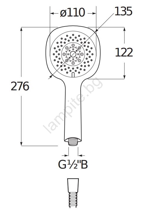• Ръчен душ с диаметър 11 см.
